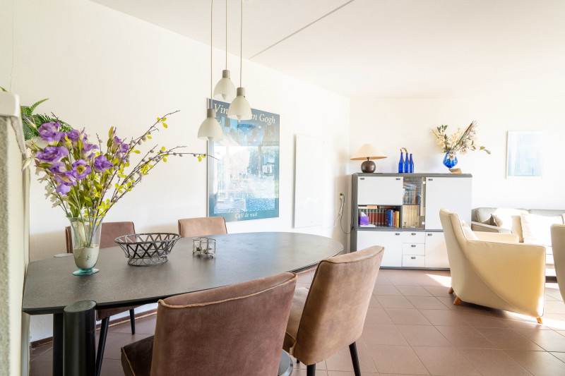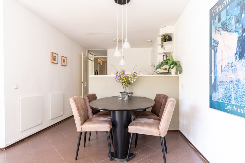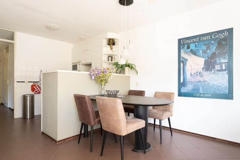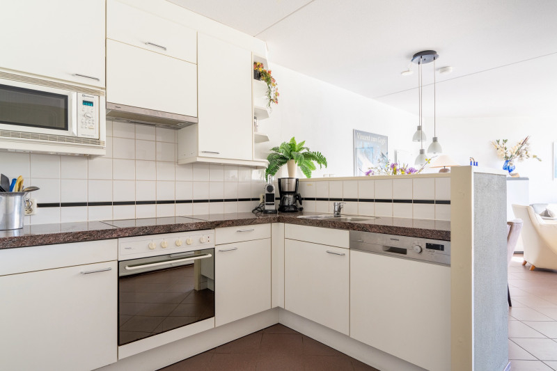 - Speelse woonkamer met halfopen keuken (compleet: vaatwasser, oven, etc.)